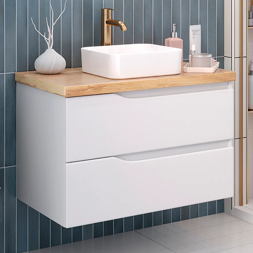 Тумба подвесная NORDIC 80 со столешницей из массива 80см под накладную раковину /AQUA DE MARCO арт-5080CNOR080/H