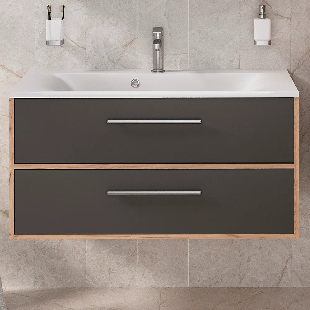 Тумба подвесная с умывальником MELBOURNE 100 /дуб/серый/ AQUA DE MARCO арт-5100GCMEL/H/V.2.0