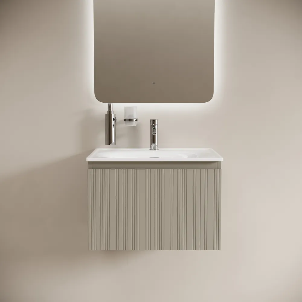 Тумба подвесная с рельефным фасадом SANCOS Code 590х453х400, c одним ящиком оснащенным доводчиками скрытого монтажа с системой Soft close (плавного закрывания), цвет серая платина , арт. CD60GP
