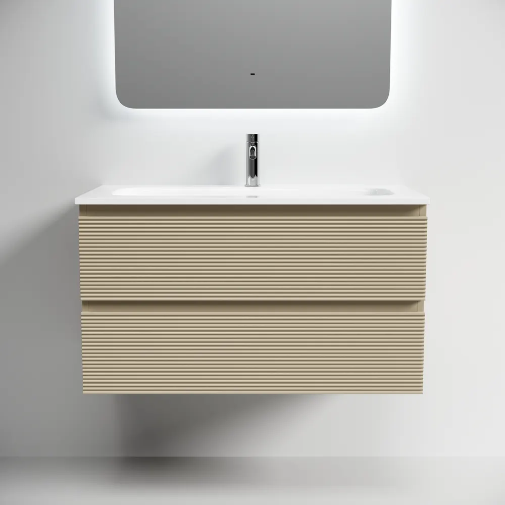 Тумба подвесная с рельефным фасадом SANCOS Folk 890х445х500, c двумя ящиками оснащенными доводчиками скрытого монтажа с системой плавного закрывания, цвет Капучино, арт.FL90CP