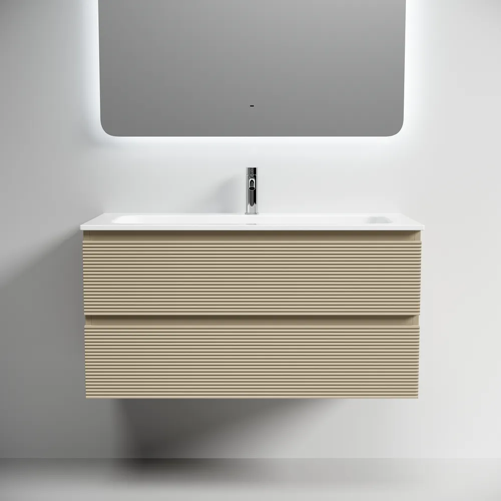 Тумба подвесная с рельефным фасадом SANCOS Folk 995х445х500, c двумя ящиками оснащенными доводчиками скрытого монтажа с системой плавного закрывания, цвет Капучино, арт.FL100CP