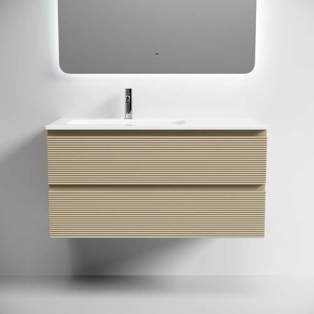 Тумба подвесная с рельефным фасадом SANCOS Folk левая 995х445х500, c двумя ящиками оснащенными доводчиками скрытого монтажа с системой плавного закрывания, цвет Капучино, арт.FL100LCP