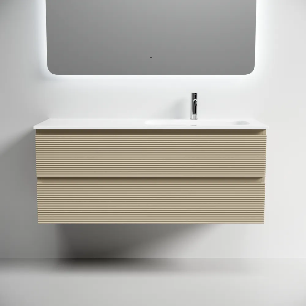 Тумба подвесная с рельефным фасадом SANCOS Folk правая 1190х445х500, c двумя ящиками оснащенными доводчиками скрытого монтажа с системой плавного закрывания, цвет Капучино, арт.FL120RCP