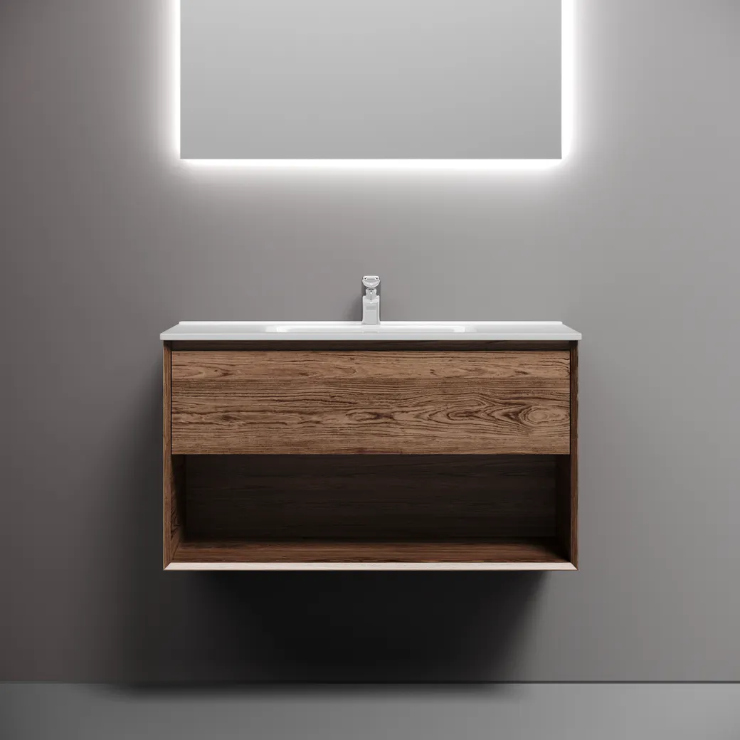 Тумба подвесная SANCOS Marmi 1.0 890х445х520 c одним ящиком оснащенным доводчиками скрытого монтажа и открытой нишей, дуб чарльстон, арт. арт-MR1.090ECH