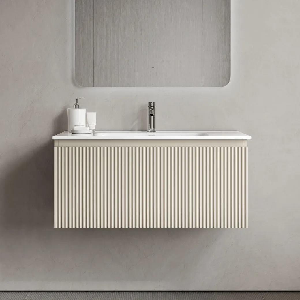 Тумба подвесная SANCOS Snob R 1.0 890х445х406, c одним ящиком оснащенным доводчиками скрытого монтажа с системой Soft close (плавного закрывания), Beige Soft , арт.SNR1.090CE