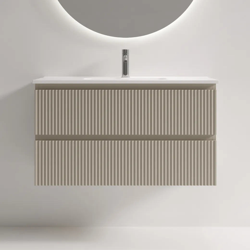 Тумба подвесная SANCOS Snob R 890х390х500, c двумя ящиками оснащенными доводчиками скрытого монтажа с системой Soft close (плавного закрывания), Beige Soft , арт.SNR90/39CE