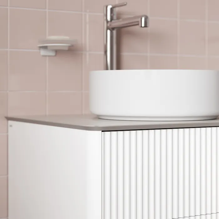 Большая подвесная тумба для ванной комнаты Aiger в классическом белом цвете с выдвижными ящиками и столешницей из керамогранита – красивый лаконичный дизайн вне времени с трендовой вертикальной фрезеровкой. • Влагостойкая матовая столешница из тонкого сверхпрочного керамогранита стильного цвета «светло-серый бетон» повторяет радиус скругления угла тумбы. Край филигранно запилен под 45 градусов и отполирован до глянцевого блеска – выглядит эстетично и при этом безопасен. Простая в монтаже – с готовыми отверстиями под смеситель и раковину. • Влагостойкие фасады и боковины из МДФ с покрытием ПВХ-пленкой с приятным тактильным эффектом soft touch прослужат долго. • Интегрированные фасады имеют скругление – выглядят красиво и безопасны для детей. • 4 вместительных ящика с внутренней отделкой в практичном графитовом цвете – стильный внешний вид и много места для хранения. Эргономичная пластиковая защита сифона. • Бесшумные направляющие для ящиков и надежные подвесы Hettich – высокое качество и беззаботная эксплуатация долгие годы. • Ящики мягко открываются за счет механизма Push-to-Open – удобные и легкие в повседневной эксплуатации. Открываются нажатием на фасад. • Сифон приобретается отдельно. Гарантия на мебель IDDIS® – 3 года, на столешницу – 3 года. (с) Авторский текст, октябрь 2024 г.