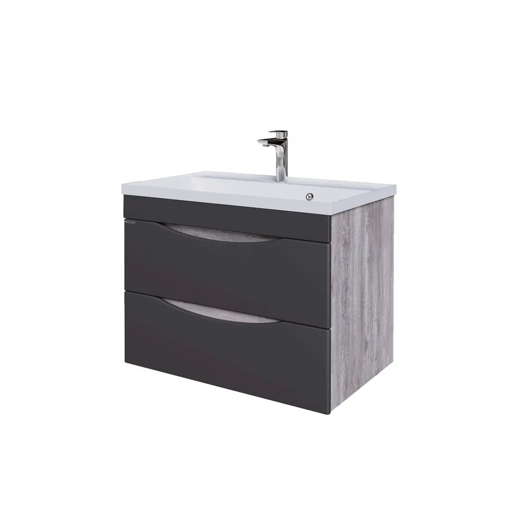 Тумба подвесная Талис-70 имеет два вместительных выдвижных ящика с врезными ручками в плоскости фасада. Ящики комплектуются шариковыми направляющими скрытого монтажа, с доводчиками. Корпус и фасады тумбы выполнены из влагостойких материалов, устойчивого к перепадам температуры и высокой влажности, крепится к стене и не занимает место на полу. Корпус: ЛДСП бетон пайн; фасады: МДФ, ПВХ- пленка графит матовый. Подвесы для крепления тумбы - в комплекте.
