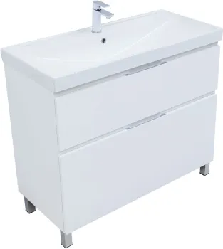 Тумба с раковиной Aquanet Алвита new 100 (Flash) напольная 2 ящ. цв. белый матовый арт-00345681