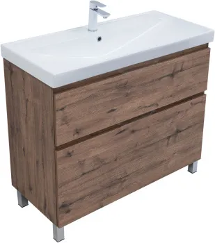 Тумба с раковиной Aquanet Алвита new 100 (Flash) напольная 2 ящ. цв.дуб веллингтон табак арт-00345682