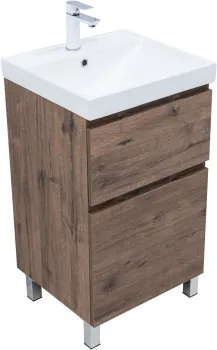 Тумба с раковиной Aquanet Алвита new 50 (Flat) напольная 2 ящ. цв.дуб веллингтон табак арт-00345674