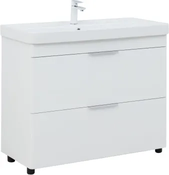 Тумба с раковиной Aquanet Ирис new 100 напольная 2 ящ. цв.белый глянец арт-00342096