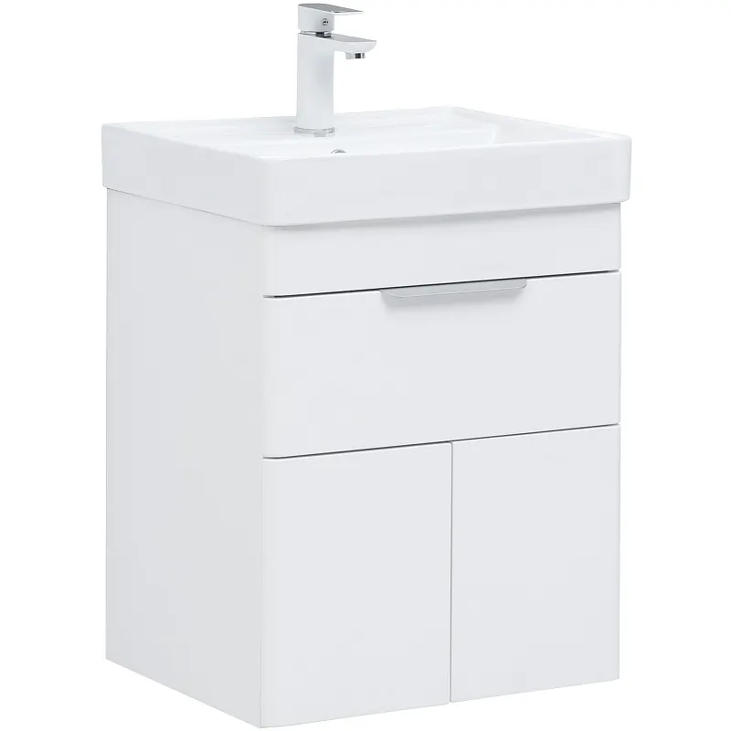Тумба с раковиной Aquanet Ирис new 50 312421 подвесная Белый глянец