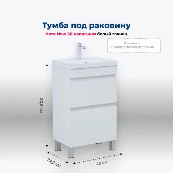 Тумба с раковиной Aquanet Нота New 50 белый глянец арт-00345793