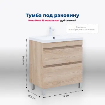 Тумба с раковиной Aquanet Нота New 75 дуб светлый арт-00345801