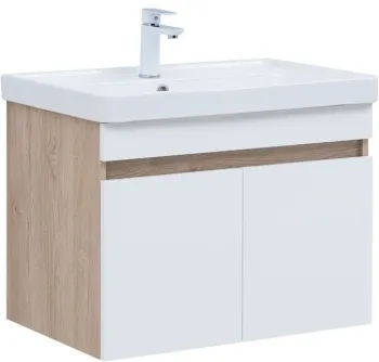 Тумба с раковиной Aquanet Оптима 80 цв. дуб светлый/белый сатин арт-00345362