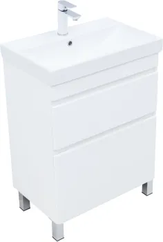 Тумба с раковиной Aquanet Слим 60 напольная 2 ящ. цв.белый сатин арт-00348178