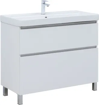 Тумба с раковиной Aquanet Вега 100 (Flat) напольная 2 ящ. цв. белый глянец арт-00345379