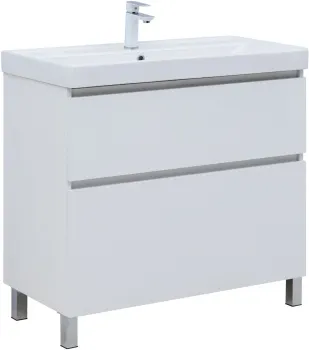 Тумба с раковиной Aquanet Вега 90 (Flat) напольная 2 ящ. цв. белый глянец арт-00345383