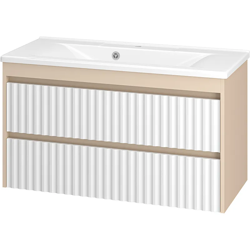 Тумба с раковиной Brevita Balaton 100 УТ000023726 подвесная Белая матовая Бежевая матовая