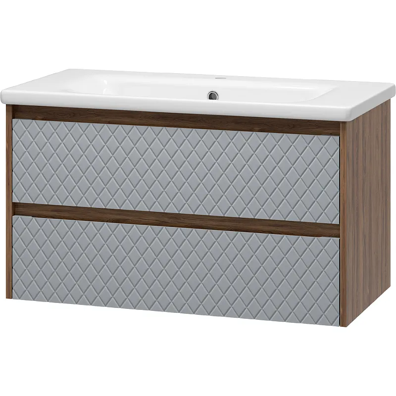 Тумба с раковиной Brevita Chester 90 УТ000022882 подвесная Серая матовая Дуб Чарльстон темно-коричневый