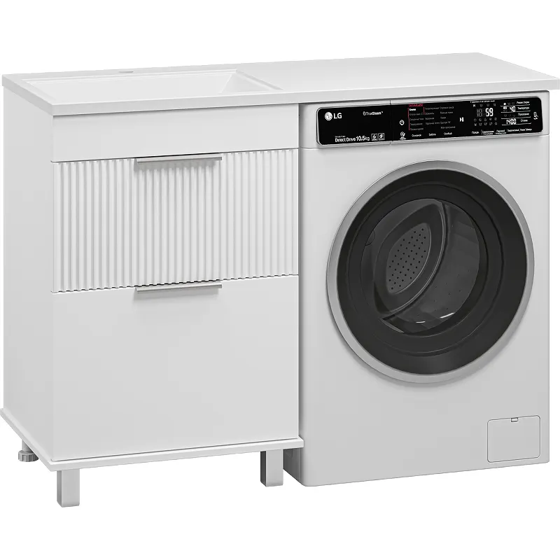 Тумба с раковиной Brevita Enfida 120 L УТ000016086 — идеальное решение для просторной ванной комнаты в современном стиле. Данная напольная тумба под раковину из ЛДСП и МДФ в белом матовом цвете предлагает удобное место для стиральной машины и обладает системой хранения с двумя выдвижными ящиками.