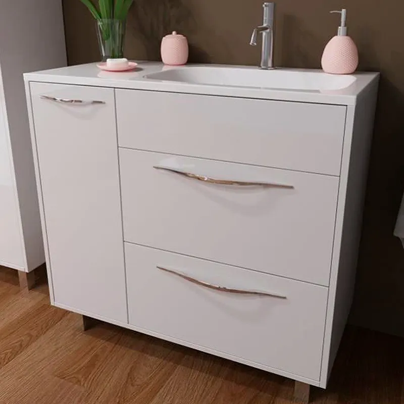- Элегантный дизайн: Белая тумба с раковиной из искусственного камня станет стильным акцентом вашей ванной комнаты.