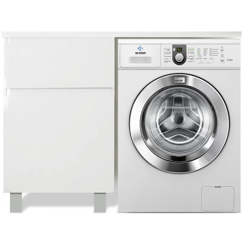 - Функциональность: Напольная тумба с местом для стиральной машины экономит пространство и упрощает организацию.