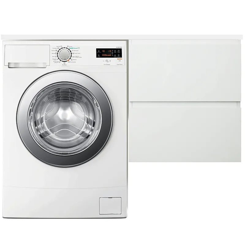 - Оптимизация пространства: Тумба с местом для стиральной машины позволяет эффективно использовать площадь ванной комнаты.