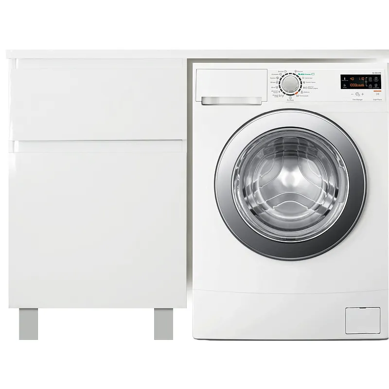- Напольная тумба с местом для стиральной машины значительно экономит пространство и делает ваш интерьер более функциональным.