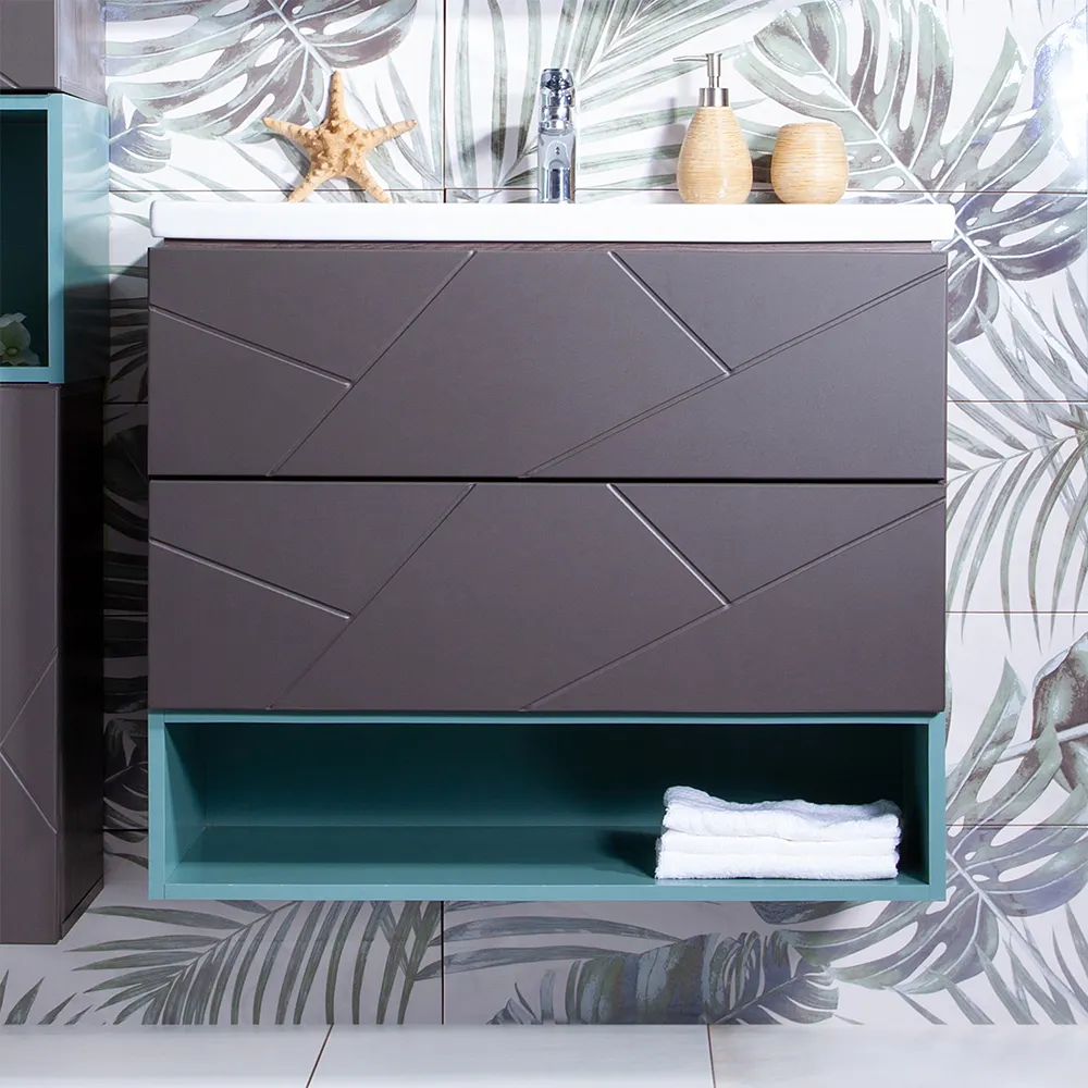 Тумба с раковиной и нишей Бриклаер , графит/муссон арт-КРИСТАЛЛ 80