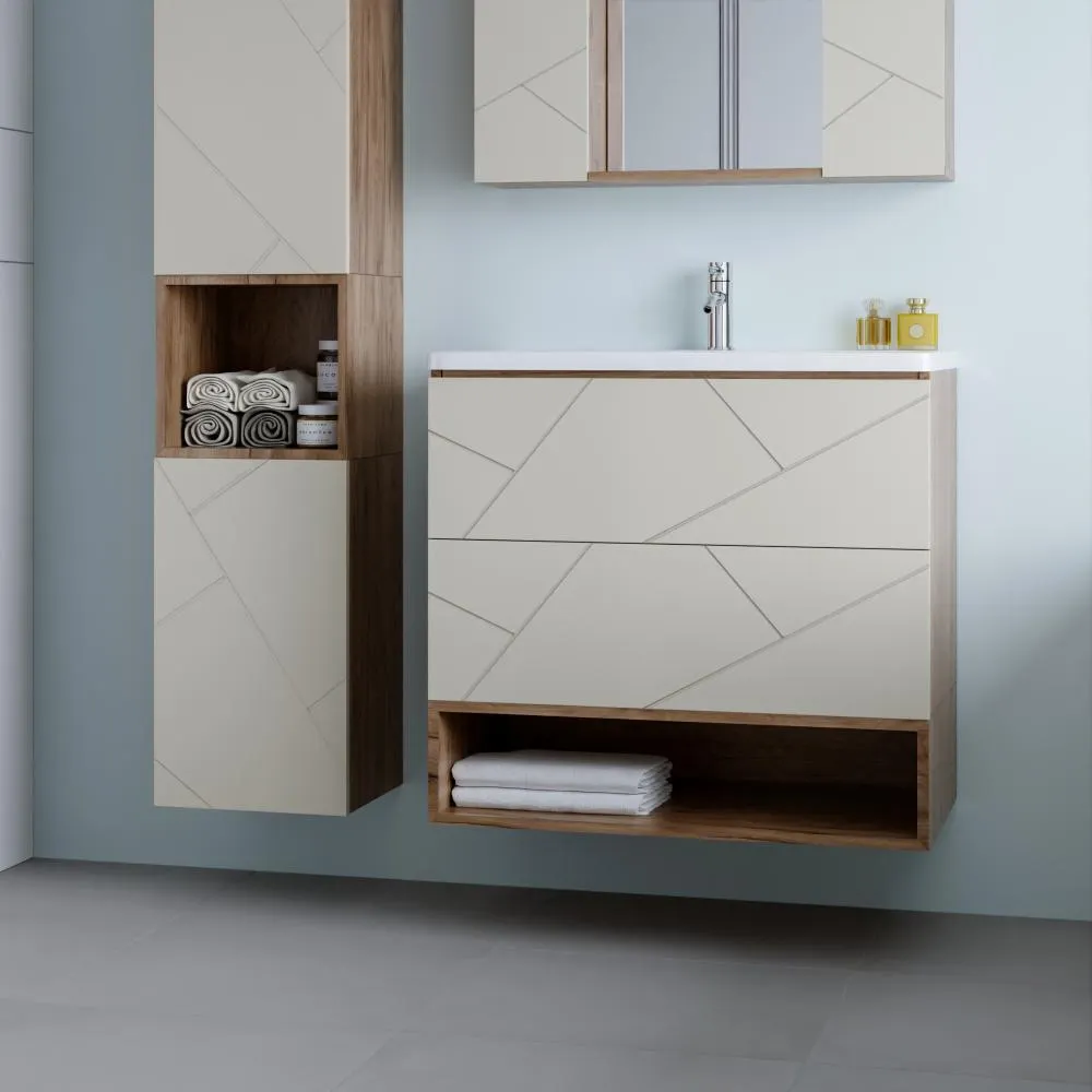 Тумба с раковиной и нишей Бриклаер , латте/дуб крафт табачный арт-КРИСТАЛЛ 80L