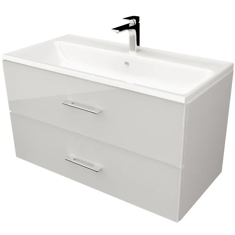 - Современный дизайн: Подвесная тумба с глянцевой поверхностью идеально вписывается в интерьер ванной комнаты.