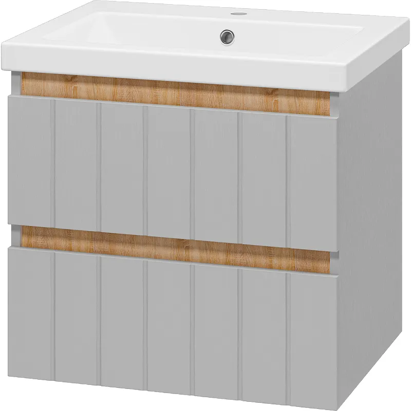 Тумба с раковиной Misty Грей 60 УТ000022655 подвесная Серый металлик Дуб Сонома