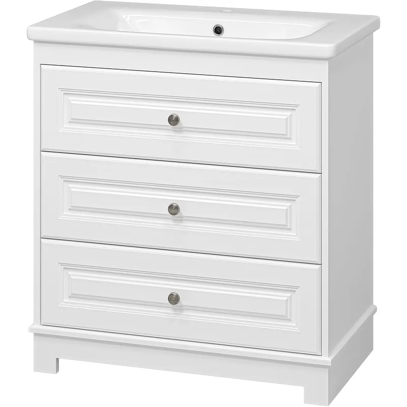 - Элегантный белый матовый цвет: Тумба с раковиной подчеркнет стиль вашей ванной комнаты.