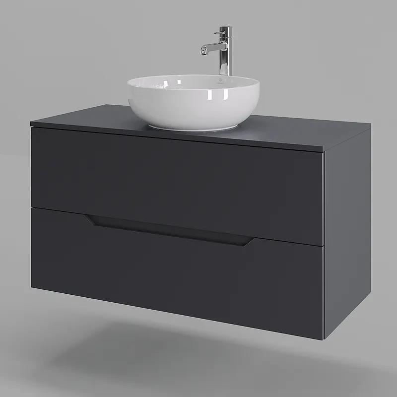 - Современный дизайн: Подвесная тумба в графит матовом цвете идеально впишется в интерьер любой ванной комнаты.