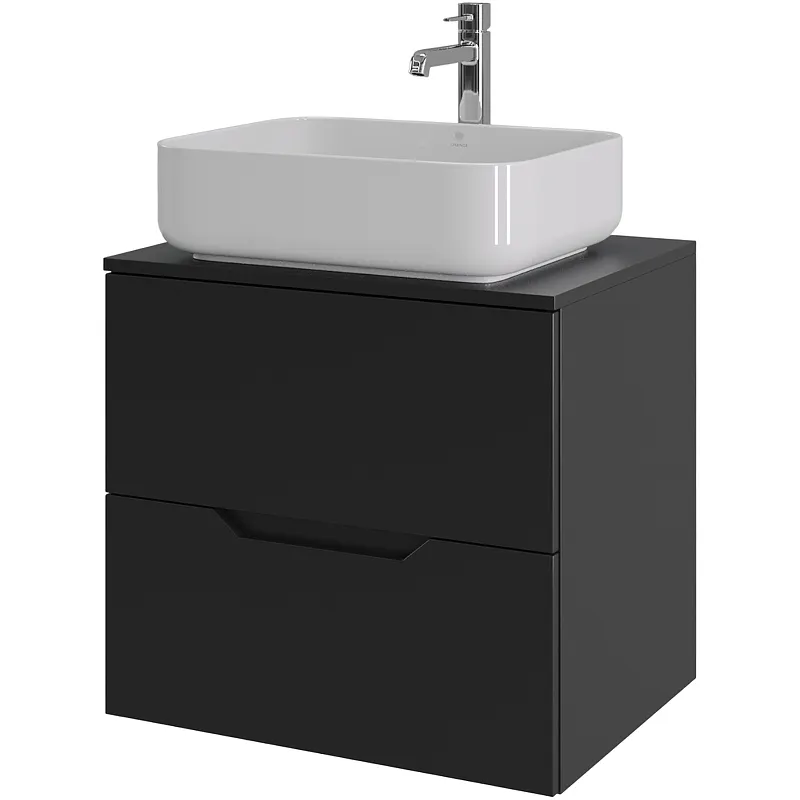 Тумба с раковиной Orange Line 60 Li-60TubMDF+B05-500W подвесная Черная матовая