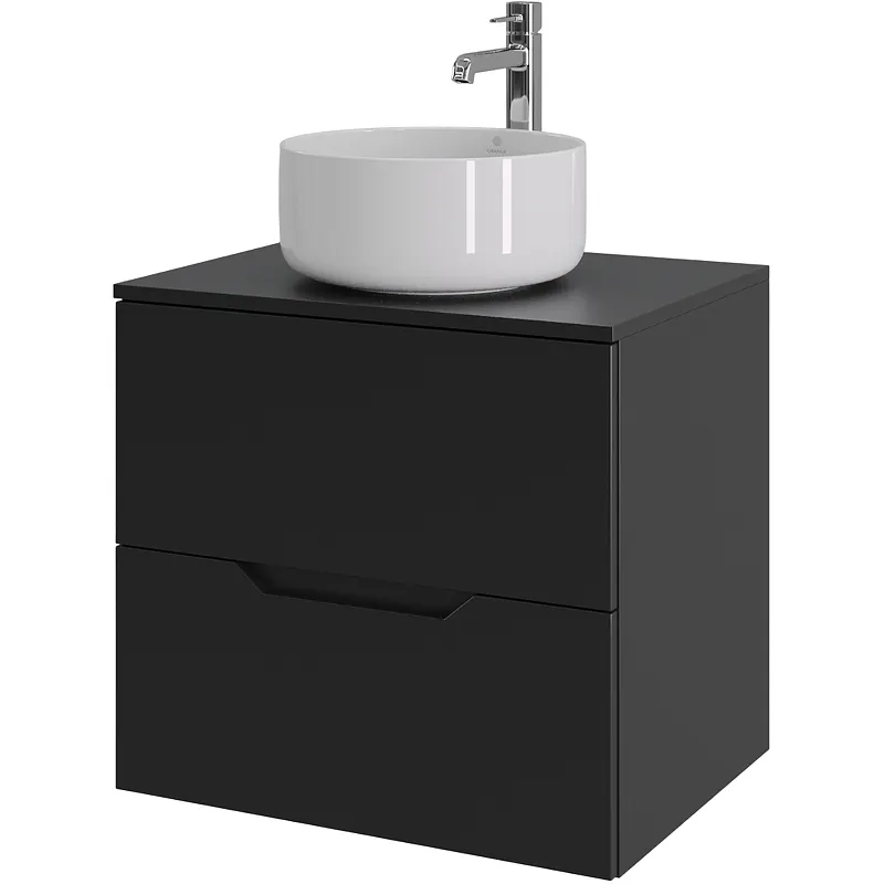 Тумба с раковиной Orange Line 60 Li-60TubMDF+B07-345W подвесная Черная матовая