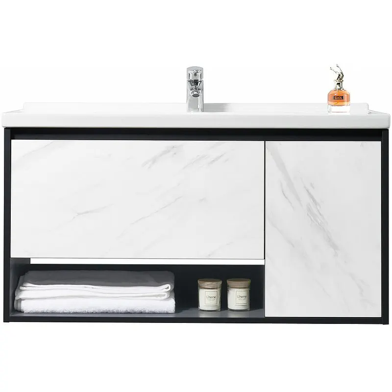 Тумба с раковиной Orans BC-0903 100 9031000 подвесная Dark grey White marble