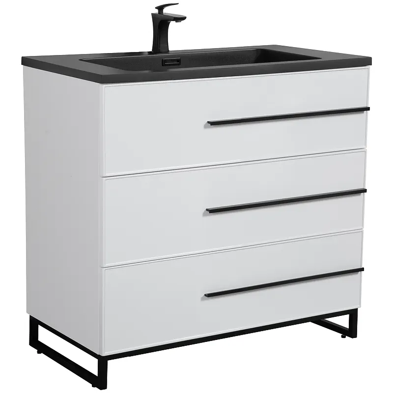- Современный стиль: Белая глянцевая поверхность и черные матовые ручки создают стильный и современный образ вашей ванной комнаты.