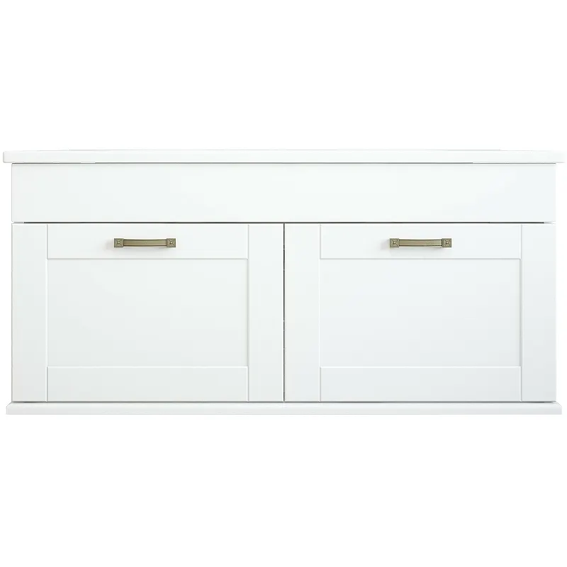 - Современный стиль: Белая матовая поверхность и бронзовая фурнитура создают стильный образ, подходящий для любой современной ванной.