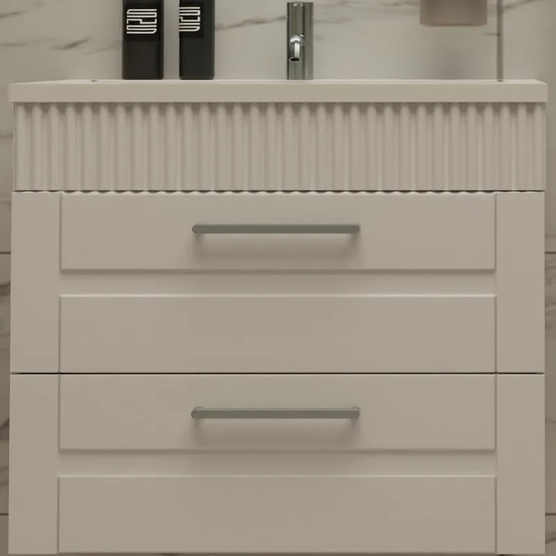 - Современный дизайн: Белая тумба выполнена в современном стиле с декоративной 3D вставкой, что добавляет изысканности в интерьер ванной комнаты.
