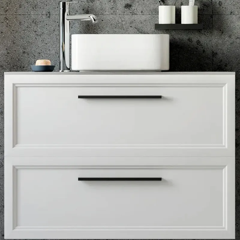 - Современный стиль: Белая матовая поверхность и черная фурнитура создают элегантный вид.