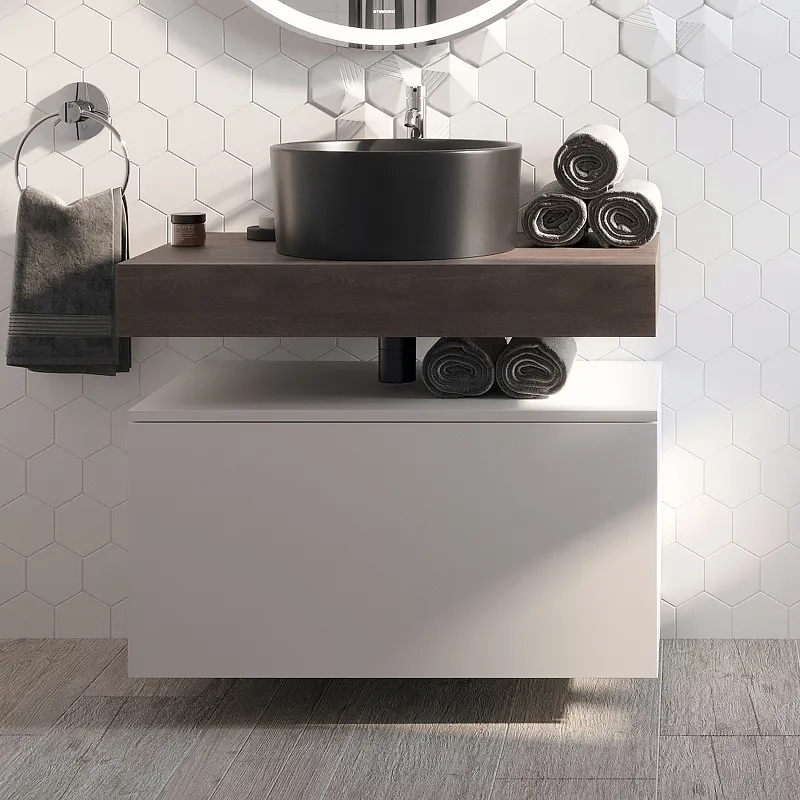 - Подвесная тумба с выдвижными ящиками: экономия пространства и удобство использования.