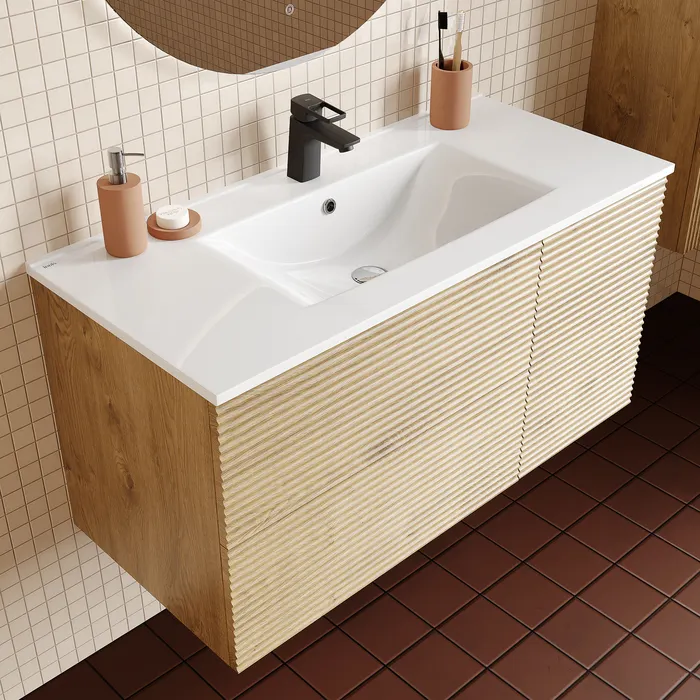 Тумба с умывальником IDDIS Bild подвесная, 100 см, дуб светлый арт-BIL10V0i95K