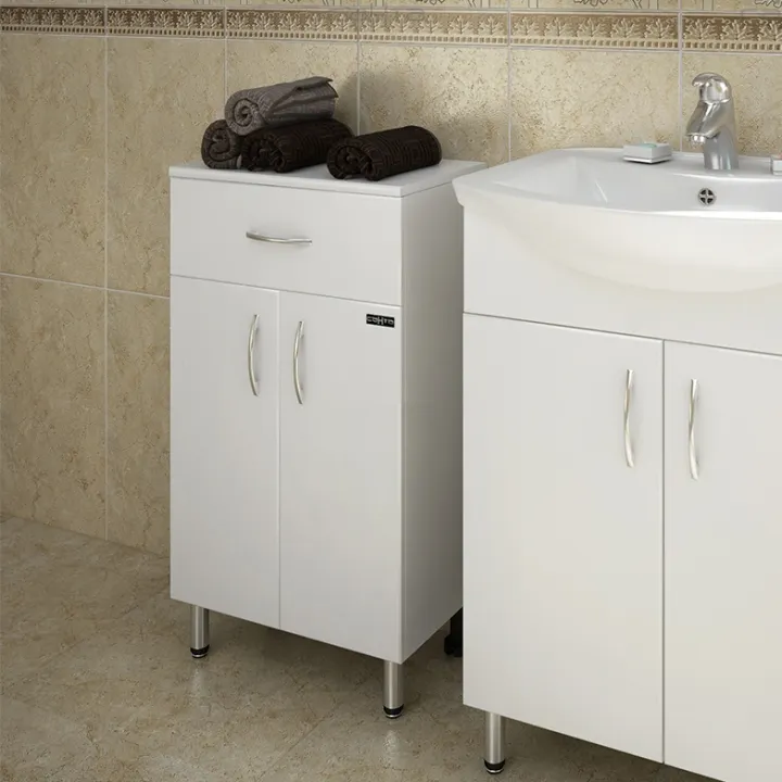 - Компактные размеры: Габариты 45 х 85 х 31 см делают данную тумбу идеальной для маленькой ванной комнаты.