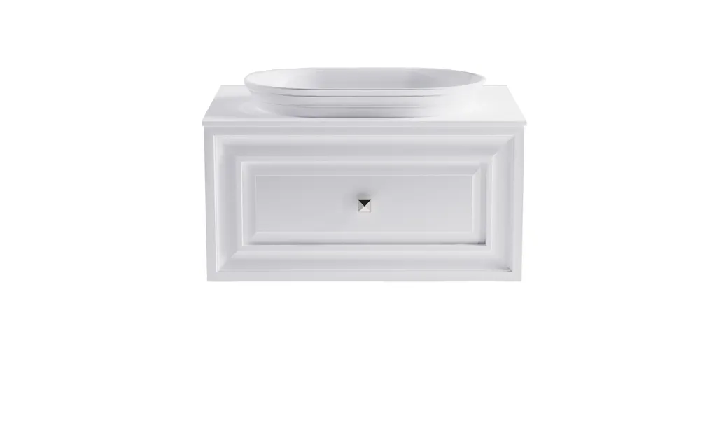 Тумба Шарм 80см 1ящ белый матовый, раковина Шарм бел глянец и столешницей Solid бел матовый арт-4631177715051