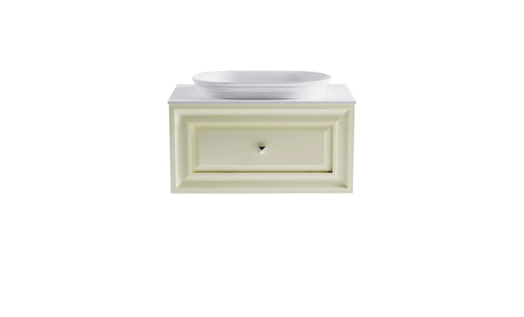 Тумба Шарм 80см 1ящ цв RAL1013 мат. с раковиной Шарм бел гл. и столешницей Solid бел гл. арт-4631177713415