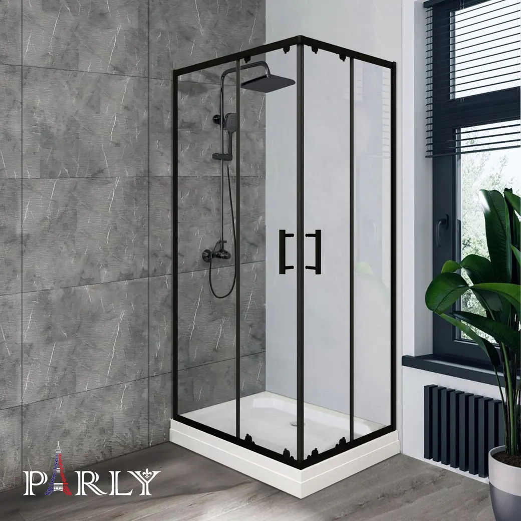 Душевой уголок Parly 100х80 см, с поддоном, профиль черный, стекло прозрачное арт-QZ81B N