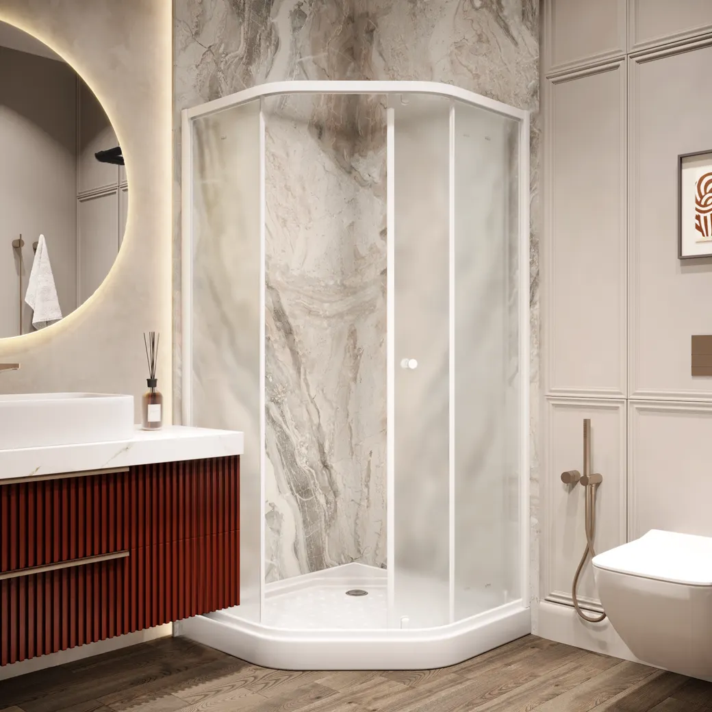Душевой уголок Parly с поддоном (90х90х197), профиль белый, стекло матовое арт-ZEР91FR